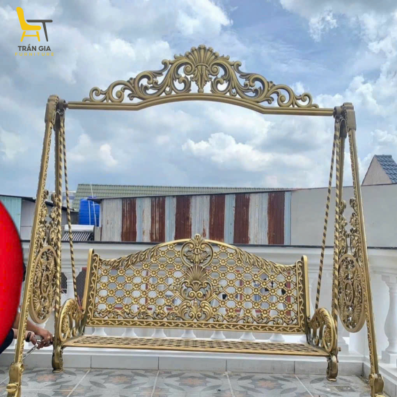 Một trong những điểm nổi bật của xích đu nhôm đúc là thiết kế hoa văn đúc liền khối mang phong cách cổ điển sang trọng. Các họa tiết uốn lượn mềm mại, đường nét tinh xảo kết hợp với màu sắc vàng và đen sang trọng giúp sản phẩm trở thành điểm nhấn đẹp mắt cho không gian. Xích đu đặc biệt phù hợp với sân vườn mang phong cách châu Âu, cổ điển hoặc bán cổ điển.